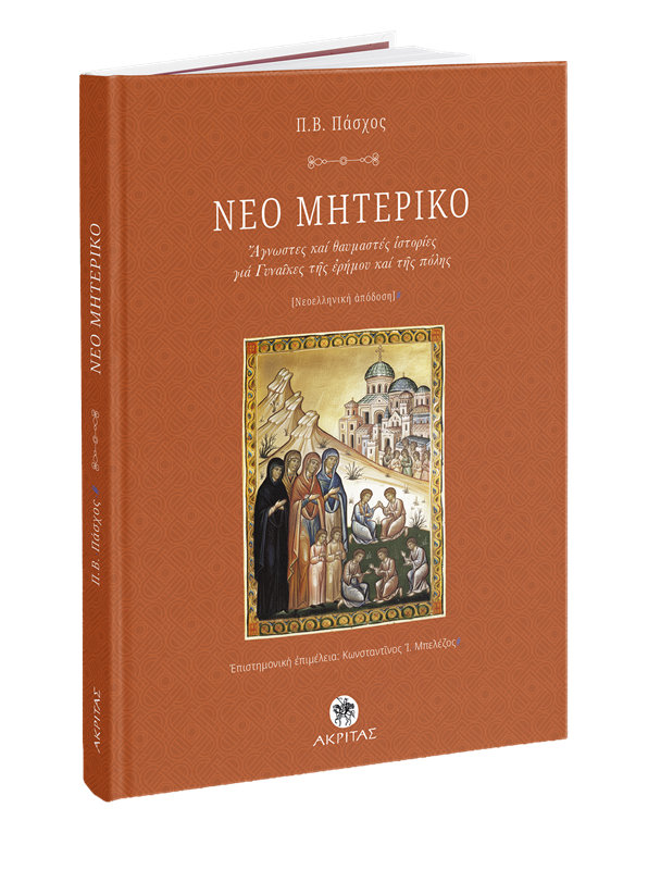 Ἡ νεοελληνικὴ ἀπόδοση ἀπὸ τὸν κορυφαῖο ἕλληνα ἁγιολόγο Π.Β. Πάσχο τοῦ Νέου Μητερικοῦ, μιᾶς συλλογῆς διδακτικῶν μητρο-πατερικο-ασκητικῶν διηγήσεων γιὰ τὴ γυναικεία ἀρετὴ καὶ τὴ γυναικεία ἀγωνιστικότητα, μᾶς καλεῖ καὶ μᾶς προκαλεῖ συνάμα νὰ ἐπανατοποθετηθοῦμε στὸν τρόπο μὲ τὸν ὁποῖο προσλαμβάνονται ἡ γυναικεία μορφὴ καὶ ἡ γυναικεία ἁγιότητα, ἡ ἄσκηση τῆς μετάνοιας καὶ τοῦ γυναικείου χαρίσματος ἐντὸς τῆς ζωῆς τῆς Ἐκκλησίας.